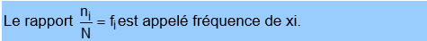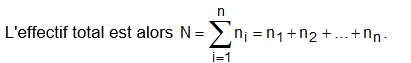 On note en général x1, x2, …, xn les valeurs prises par la variable étudiée et ni le nombre d’individus sur lesquels on a observé la valeur xi. ni est appelé effectif de la valeur xi de la variable.