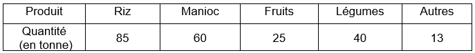Exemple : Voici la production agricole annuelle d’une certaine commune rurale :