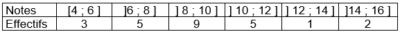 Dans l’exemple précédent, regroupons les notes en classes d’amplitude 2. On obtient le tableau suivant :
