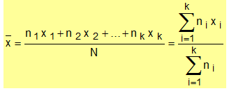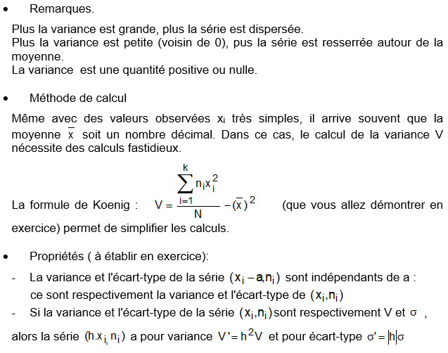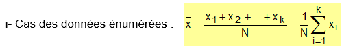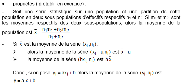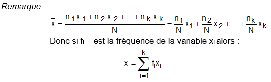 ii- si la série est donnée par sa distribution d’effectifs, les valeurs x1, x2, …, xn ayant respectivement pour effectifs n1, n2, ..,nk , alors :