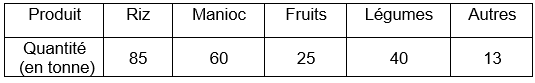 Exemple : Voici la production agricole annuelle d’une certaine commune rurale :
