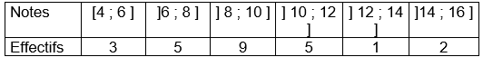 Dans l’exemple précédent, regroupons les notes en classes d’amplitude 2