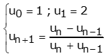 \begin{cases} u_0=1 \\ \\ u_{n+1}=\dfrac{u_n}{u_n+1} \end{cases}