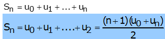 où U_0 : 1er terme de la somme et n+1 : nombre de termes de la somme.