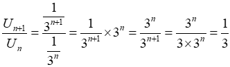 donc U_n est une suite géométrique de raison q=\dfrac{1}{3} et de premier terme