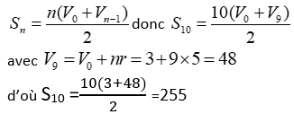 b) Calculer la somme S10 des 10 premier termes
