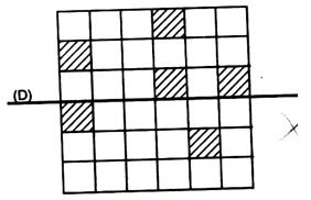 Complète la figure suivante en hachurant moins de sept cases pour que (D) soit un axe de symétrie pour la figure :